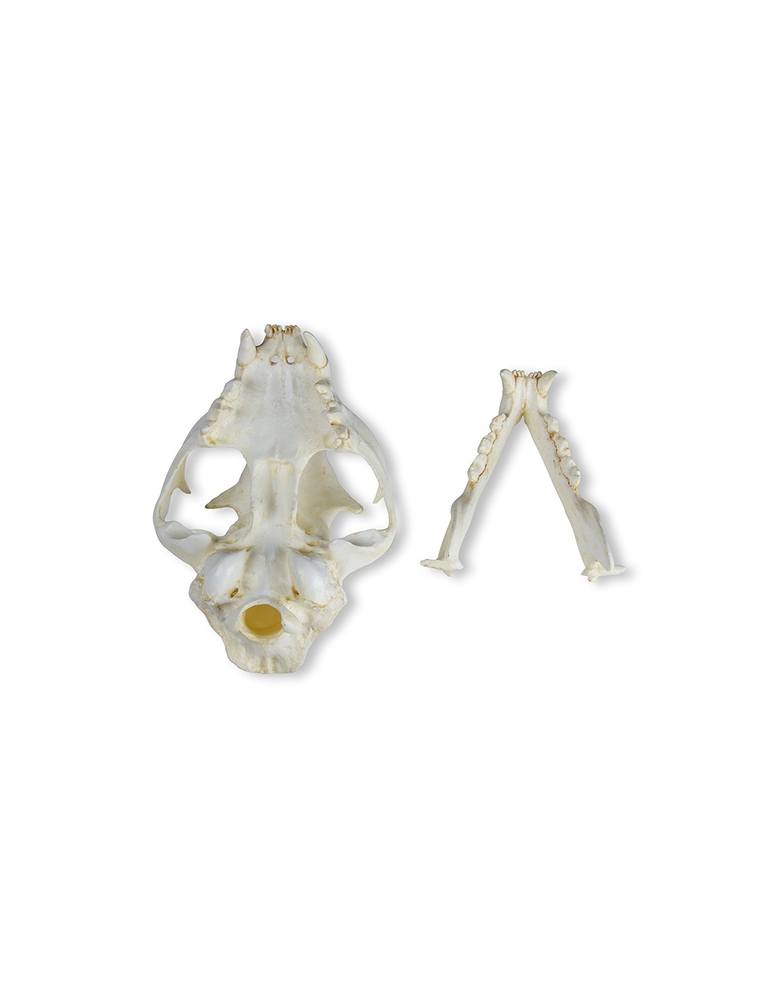 Este crânio de gato é feito de PVC a partir de um molde real.